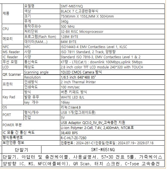 본문 스마트로 NFC 무선카드단말기 SMT-M651NQ -애플페이지원-IC/MSR단방향-1D/2D 카메라 방식 (QR간편결제)-C타입 고속충전지원-KLSC,NFC브랜드인증(VISA,MASTER,AMEX)/Apple PAY지원-스피커 탑재/음성 멘트 지원